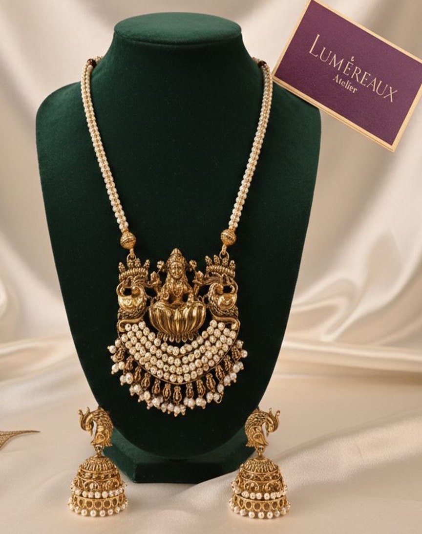 Temple Grace Lakshmi – Peacock Pendant Combo Set